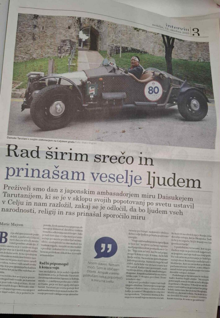 スロベニア三大新聞のうちの一つ『VECER』(第二次世界大戦後から80年続くデイリー新聞)にて新聞のトップベージに樽谷が掲載されたと友人の記者から連絡を受けました。。