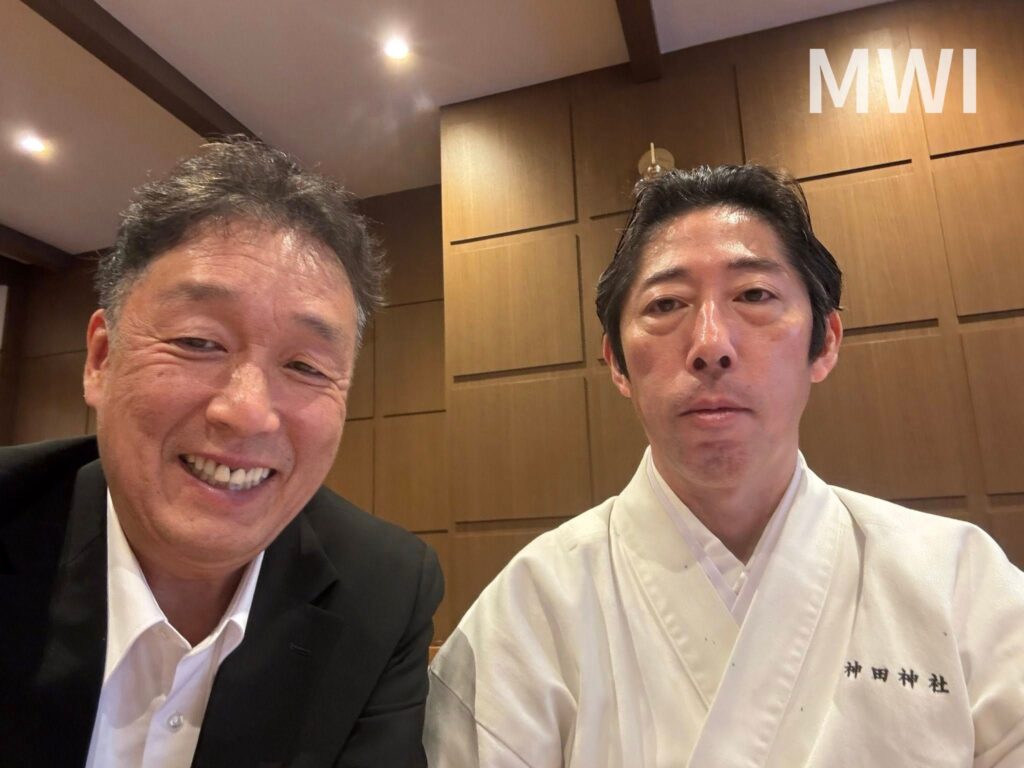 写真 樽谷大助と神田明神禰宜・岸川雅範博士(神道学)