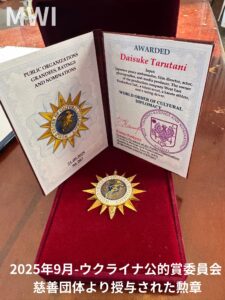 2025年11月6日、東京都中央区銀座にて、ウェーブリンク株式会社代表取締役 稲村徹也氏へ、「サダコの折鶴」が樽谷から贈られました。